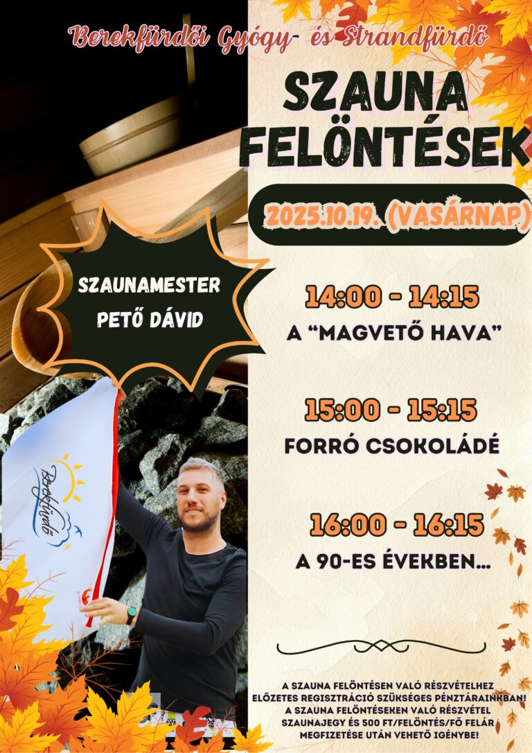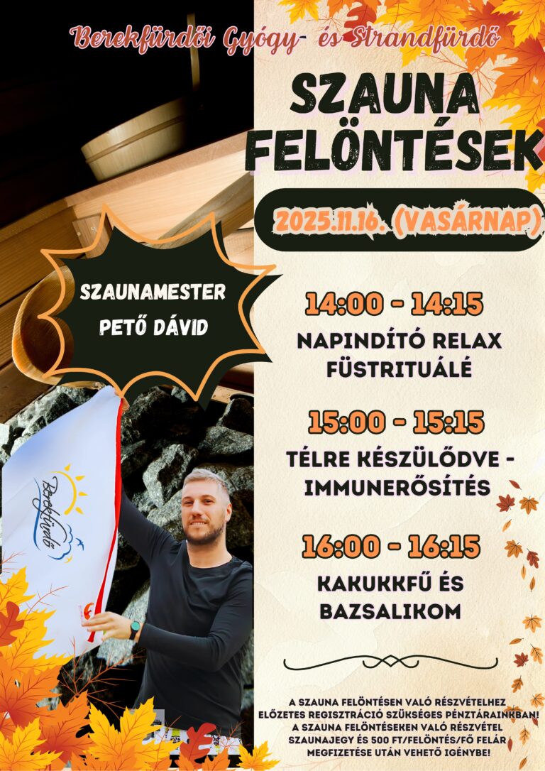 Különleges szauna felöntések várnak benneteket Pető Dávid szaunamester vezetésével a Berekfürdői Gyógy-és Strandfürdőben!