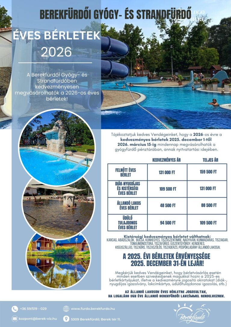 Megérkeztek a 2026-os éves bérletek a Berekfürdői Gyógy-és Strandfürdőbe! ![]()